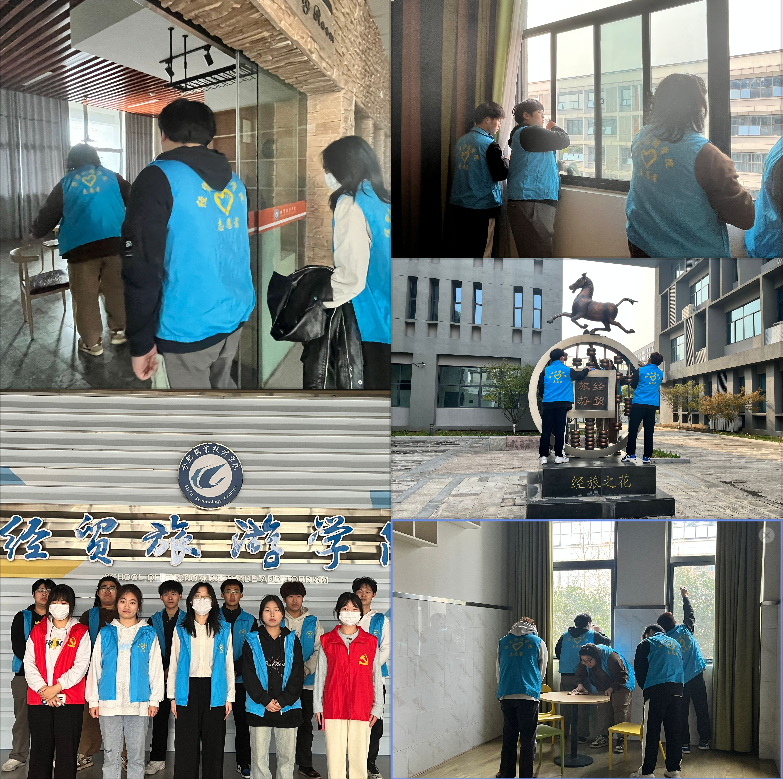 组织一次志愿活动。大棒一进一出大大爽团总支组织青年团员代表认真地清扫了经贸楼中的纸屑、杂物等垃圾,对经贸楼内走廊、实训室环境做了整理整顿、美化亮化。通过实践活动,引导青年大学生身体力行,践行社会主义核心价值观,在日常活动中培养当代青年人的社会责任感。