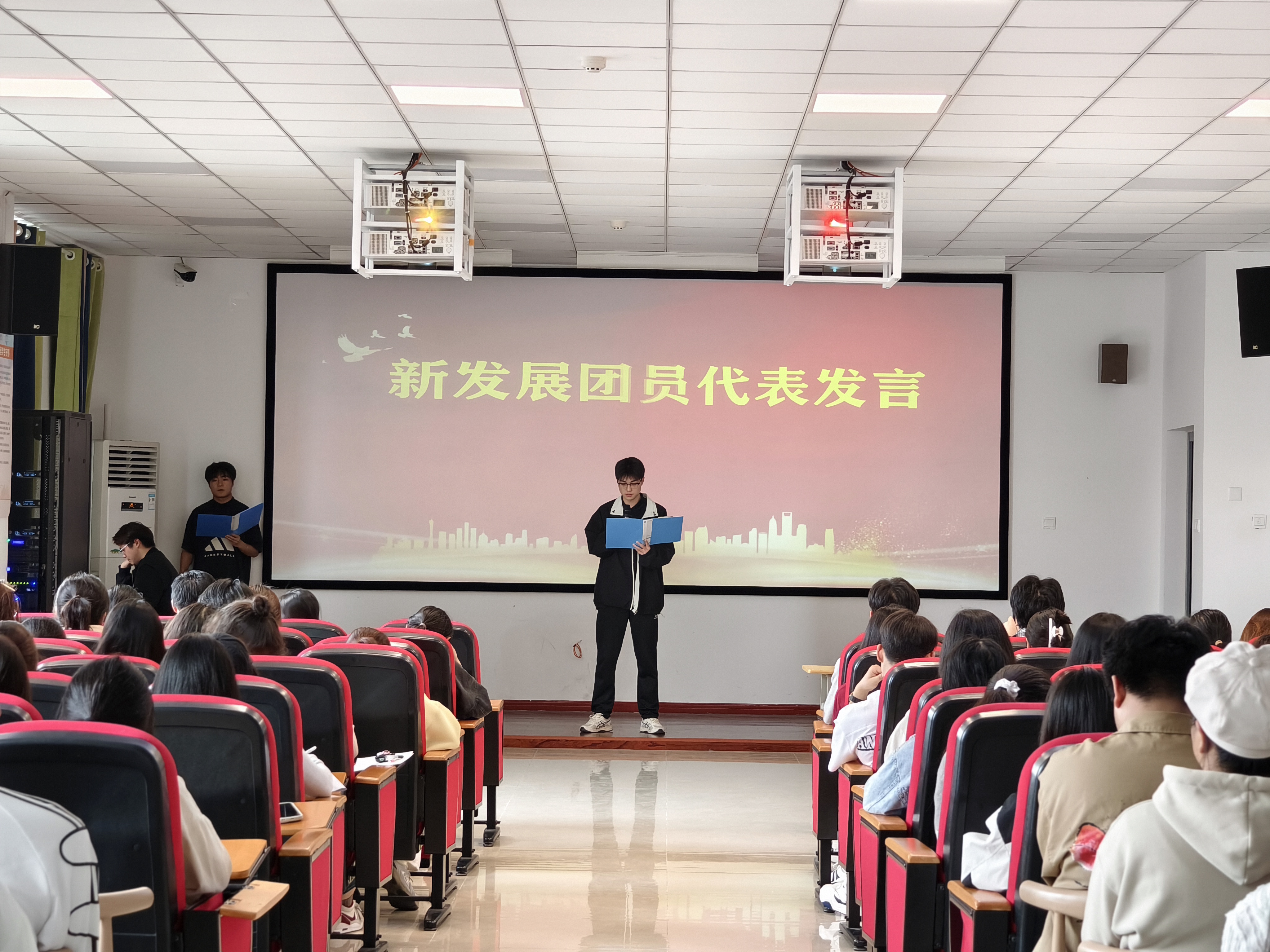 24级大数据与会计专业班吕尹龙作为新团员代表发言。他满怀激情地表达了对共青团组织的向往与热爱,他表示,将会珍惜团员身份,以更高的标准要求自己,积极参与团学组织活动,引领带动身边其他青年学生更多加入学院各项活动和工作中。