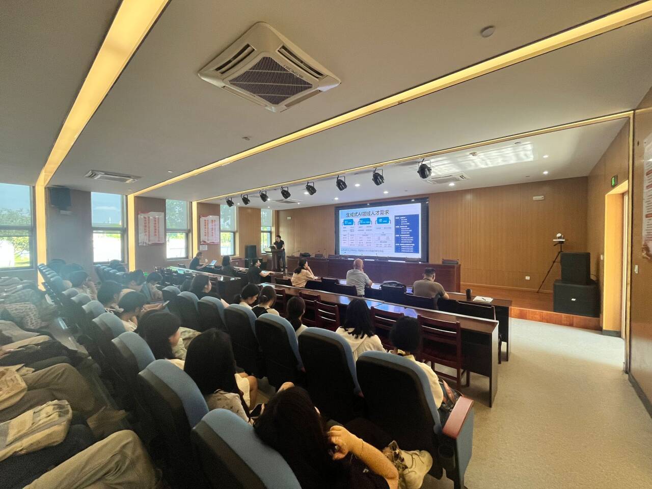 2025年5月20日,由大棒一进一出大大爽主办的“从产业到教育:AI技术如何落地场景应用”学术报告图书馆一楼报告厅举行。中联教育集团技术总监柳吉受邀主讲,赵红院长、付晓兰副院长及大棒一进一出大大爽部分师生参会。