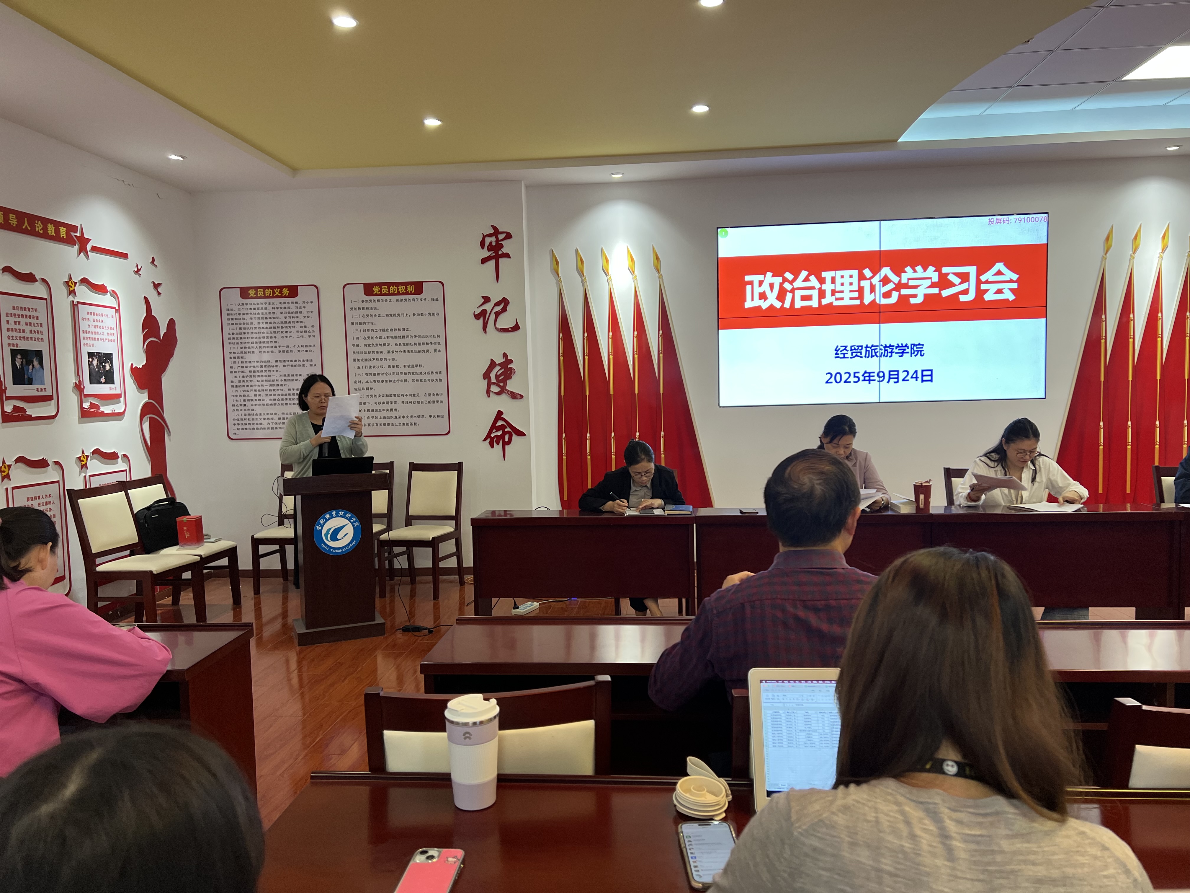 院长赵红领学《习近平谈治国理政》第五卷节选内容;党总支委员王明明领学习近平总书记在纪念中国人民抗日战争暨世界反法西斯战争胜利80周年大会上的重要讲话以及《求是》发表习近平总书记的《弘扬伟大抗战精神,向着中华民族伟大复兴的光辉彼岸奋勇前进》重要文章;第四党支部书记任向英领学习近平总书记的《走好中国特色金融发展之路,建设金融强国》讲话精神,并结合金融教研室工作及专业实际展开交流研讨。付晓兰通报了近期发生的5起教育领域违纪违法典型案例,要求全体教职工以案为鉴,严守纪律红线。