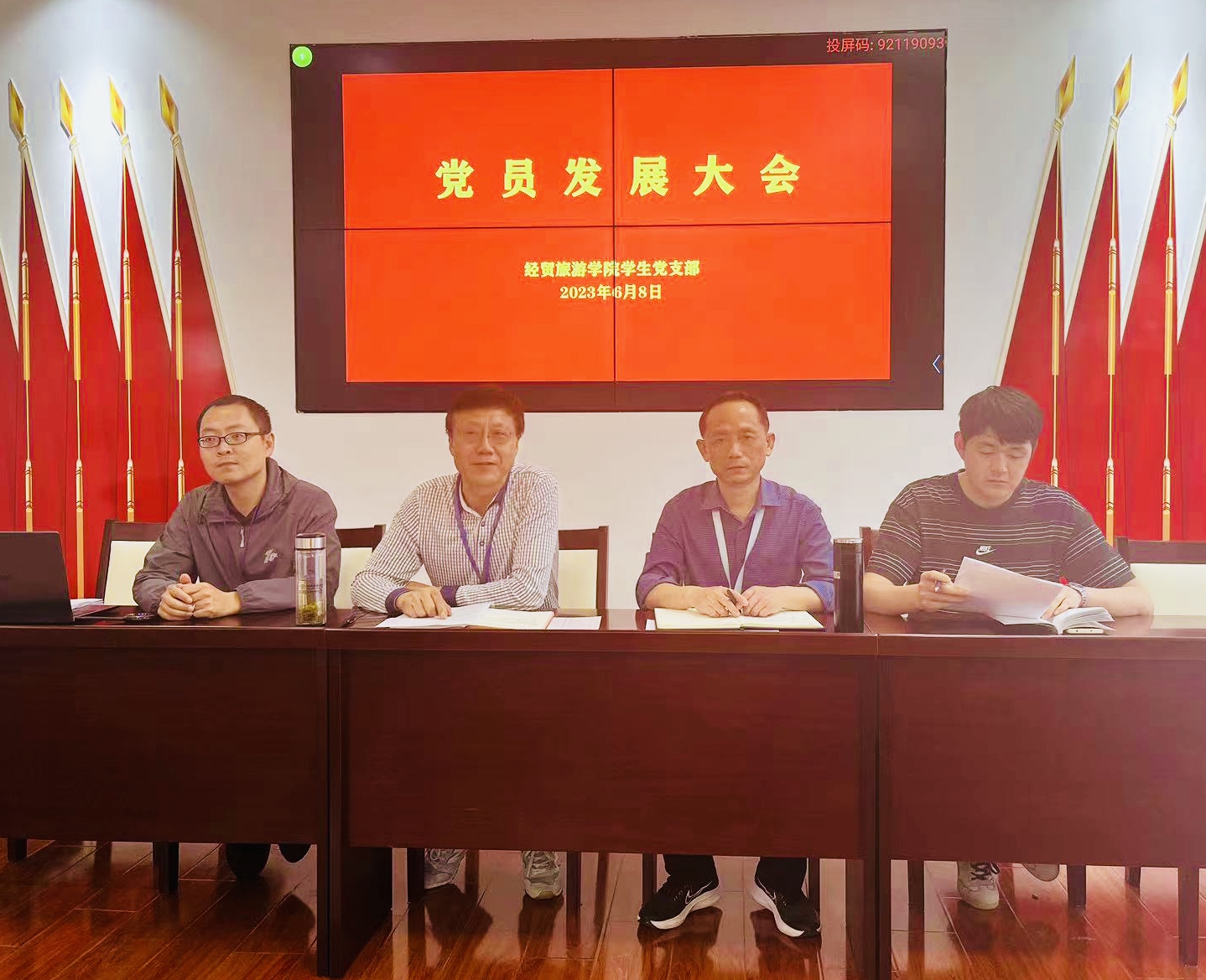 6月8日下午,大棒一进一出大大爽学生党支部在经贸楼党性体验馆召开预备党员发展大会,支部全体党员、发展对象和入党介绍人出席会议,会议由学生党支部书记王明明主持。