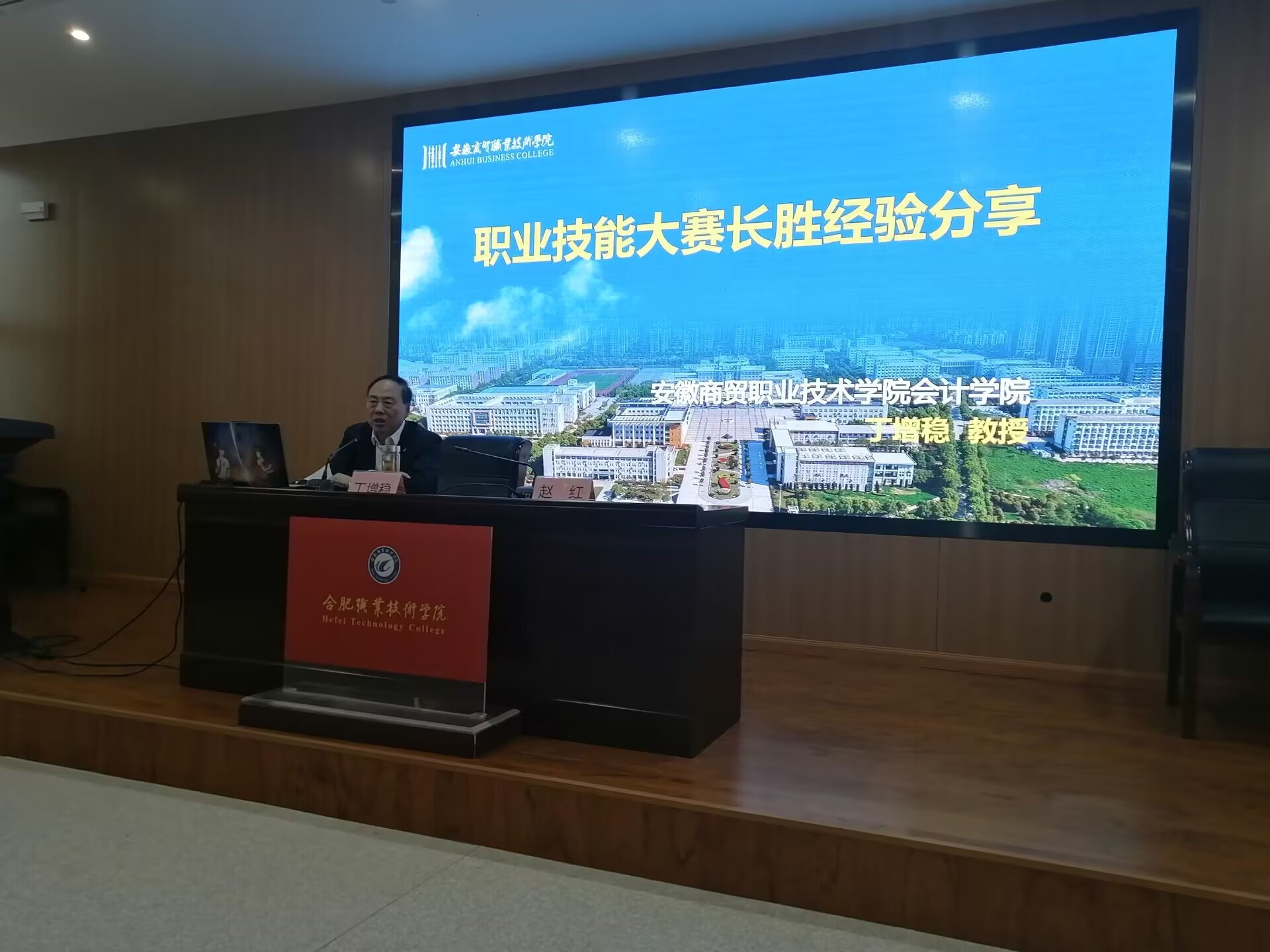 丁院长首先介绍了安徽商贸职业技术学院历年来的竞赛成果和备赛准备等情况,从学生团队、教师团队、教材建设、实训课建设等方面,介绍了大赛如何备赛,会计专业如何转型、管理型会计人才如何培养等问题。