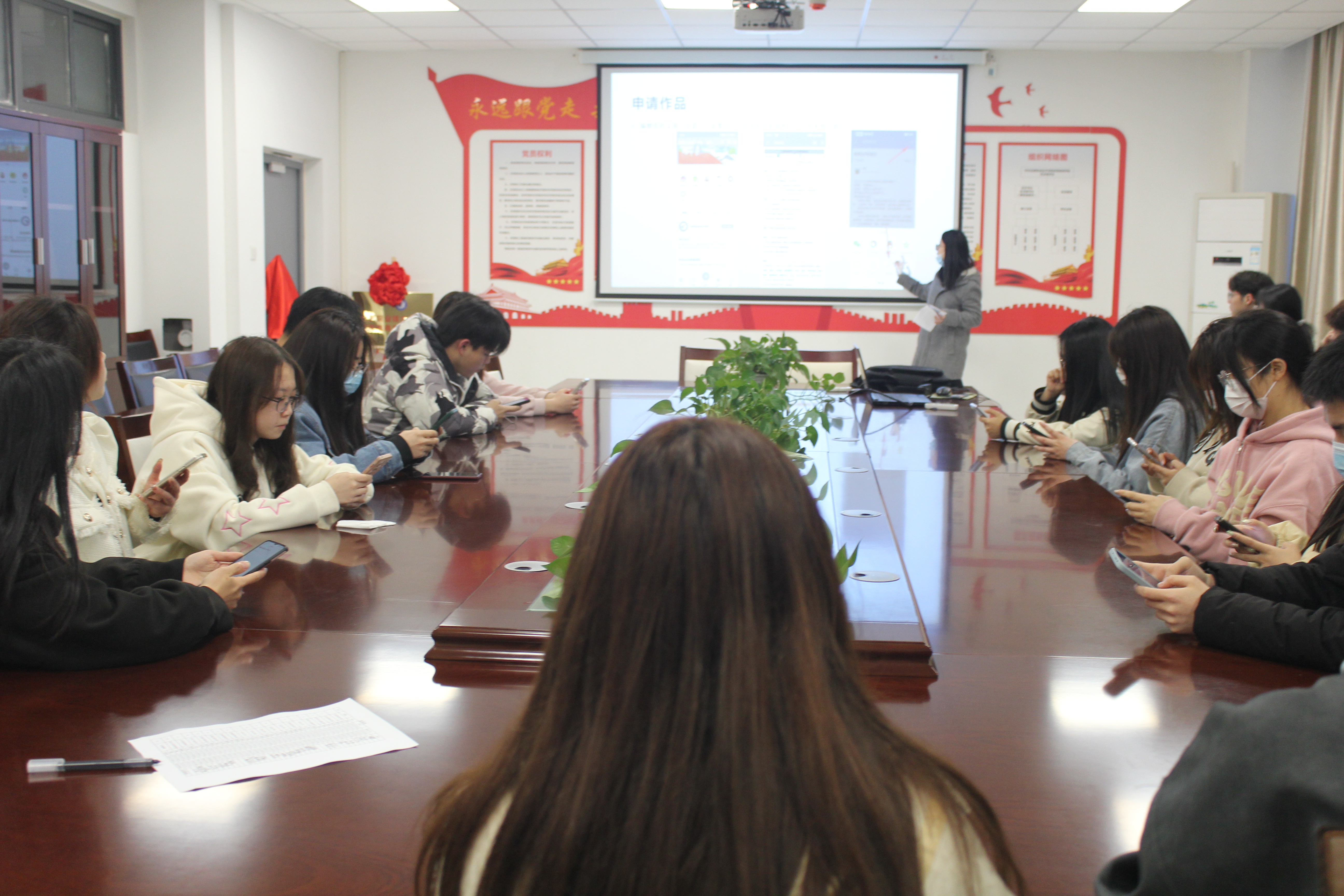 3月23日下午,大棒一进一出大大爽在经贸楼会议室召开学生易班文章申请培训会,会议由张曦伦主持,参会人员为易班评审小组成员、22级各班班长以及宣传委员。