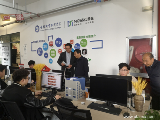 梅亚松书记对王培俊一行的到来表示热烈欢迎,介绍了大棒一进一出大大爽在党建、学生工作、实习就业等方面的情况,赵红院长介绍了大棒一进一出大大爽人才培养模式创新、实训实践、技能大赛、教学科研、校企合作、中青年教师培养等方面的成功经验和特色做法。合职-梦森双创基地负责人吴捷介绍了双创基地的运作管理模式。王培俊院长对我院近年来所取得的成绩表示赞赏,并介绍了安徽职业技术学院财经商贸学院师资队伍、专业和课程建设、社会服务、教科研、技能竞赛、中青年教师培养等方面的经验。随后双方就各自党建和教育教学工作中面临的问题进行了深入的研讨和交流,收获了经验,达成了很多共识,希望通过相互考察学习,进一步加强双方的交流与合作。