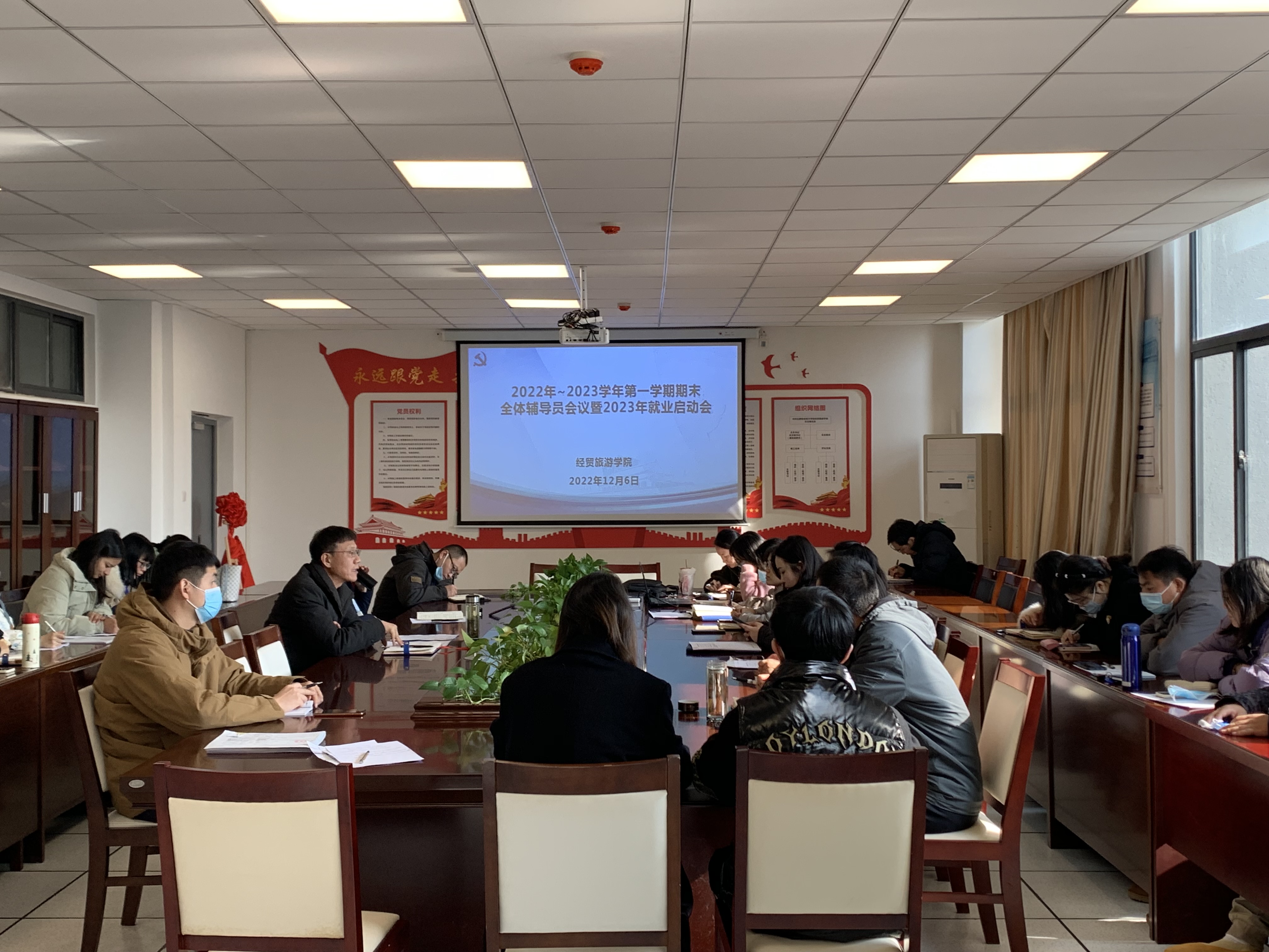 12月6日中午,大棒一进一出大大爽在会议室召开2022-2023学年第一学期期末全体辅导员会议暨学院2023年就业工作启动会。学院党总支书记梅亚松、党总支副书记刘圣春及全体专兼职辅导员参加了会议。