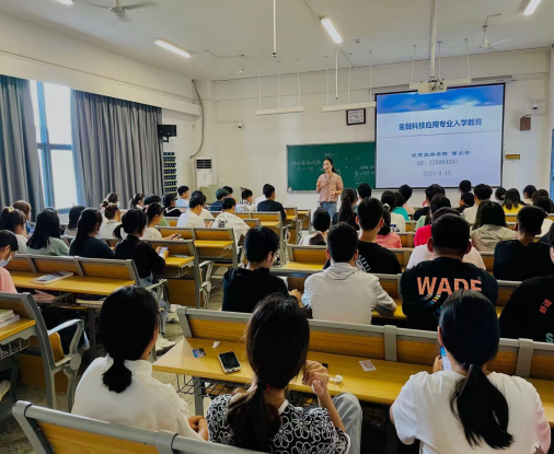金融教研室骨干教师曹永年老师为21级金融科技应用专业两个班级新生带来了关于金融科技应用专业前景解读、如何开展专业学习、怎么从高中过渡到大学学习模式等方面的介绍。新生们满怀期待提出自己的疑惑,曹老师都给予了回复,让大家看到了专业的希望,树立了学好专业的信心,看到作为新兴行业的金融科技应用的飞速发展,了解专业的内涵和内容,并看到我们存在的差距和国家这方面专业人才的缺口。同学们非常感慨,都表明态度要好好学习专业知识,用专业武装自己。最后师生对于专业的相关学习考证升本课外积累等进行了交流和分享。整场专业介绍会持续了一个半小时,大家积极交流反映积极,是一次收获颇丰的专业介绍分享。