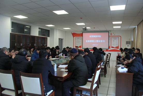 第一阶段,全院教职工开展新年首次学习活动,会上,院党总支书记梅亚松传达了校党委中心组学习会议精神;党总支副书记尹仕果领学《习近平在庆祝澳门回归祖国20周年大会暨澳门特别行政区第五届政府就职典礼上的讲话》;院长赵红领学《关于加强和改进新时代师德师风建设的意见》。参会人员均认真听讲,虚心学习。