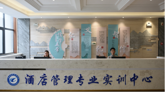 酒店管理专业实训中心拥有24间(套)客房,包括22间标准间,2套套间,是按三星级硬件标准建造的集客房入住、会议服务、实训教学于一体的生产性实训基地,可同时供100名学生实训,一年可供4000人次实训,满足酒店管理与数字化运营和旅游管理专业学生开展前厅客房服务与管理课程实践教学的需要。