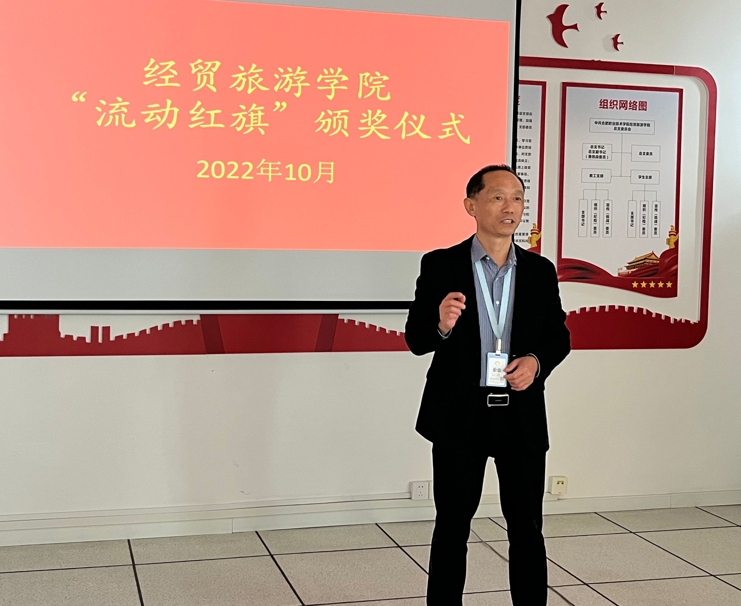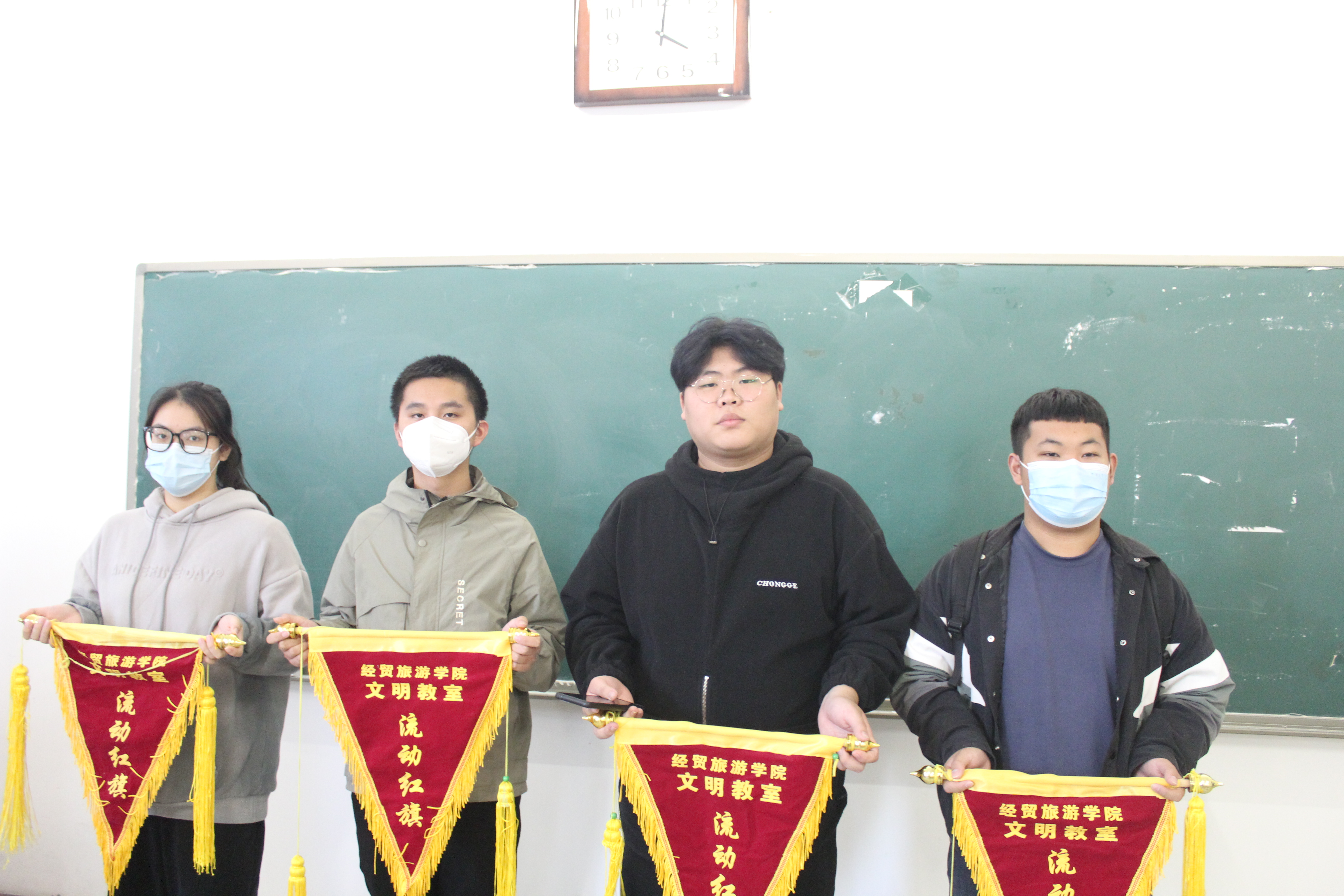为了规范班级卫生管理,优化学生日行为规范,促进学生良好习惯的养成,创造干净整洁舒适文明的学习环境,大棒一进一出大大爽长期开展了“文明教室流动红旗”评比活动。2022年10月11日下午,大棒一进一出大大爽在教学南楼110举行了新一届“文明教室流动红旗”颁奖仪式。学院党总支副书记、副院长刘圣春出席了颁奖仪式并为获奖班级颁奖。