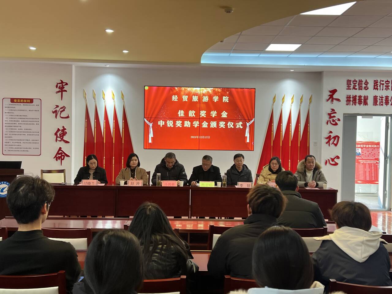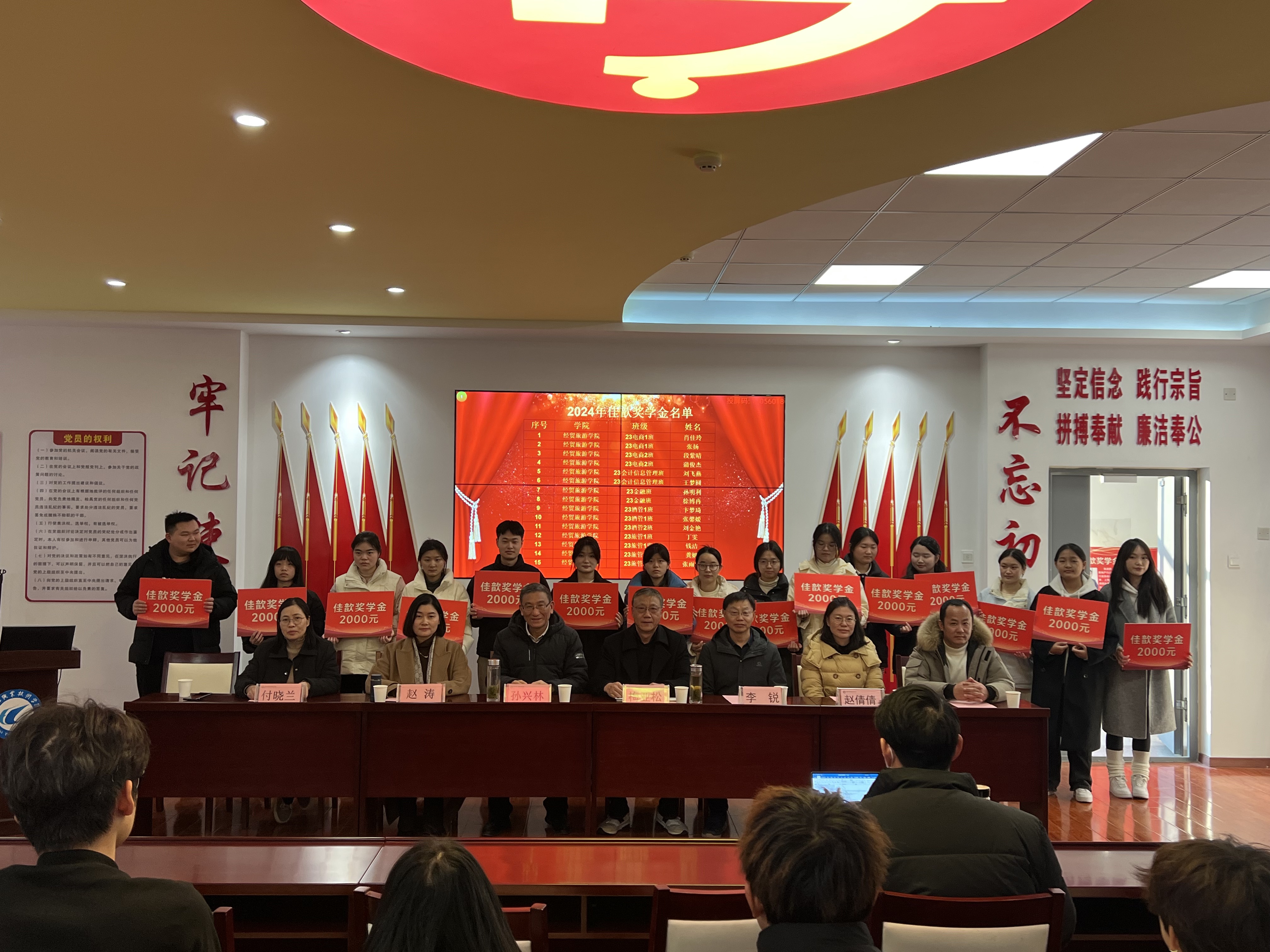 12月17日下午,大棒一进一出大大爽在党性体验馆举行2024年佳歆奖学金、中锐奖助学金颁奖仪式。校关工委副主任孙兴林、安徽中锐税务师事务所有限责任公司董事长李锐、上海佳歆房地产投资顾问有限公司总经理赵涛、学院党政领导班子、学院学管办全体辅导员、全体获奖学生和部分学生代表参加了此次颁奖仪式。颁奖仪式由学院党总支书记梅亚松主持。