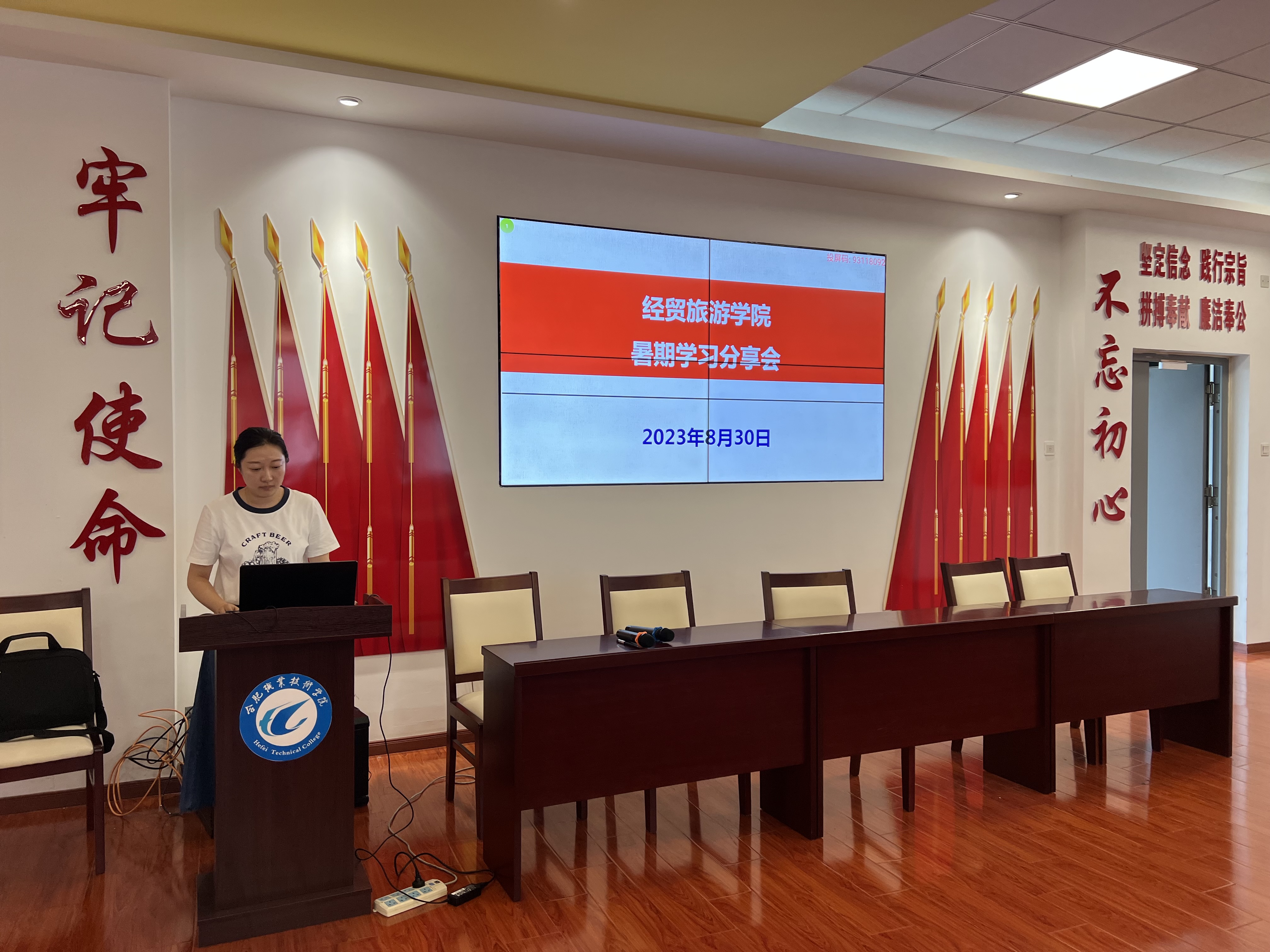 教师周云青、闫瑞阳分享了暑期赴淮北师范大学参加师资培训的经历、潘治学分享了赴企业实践的深刻体会。三位教师从培训内容回顾、培训成果展示、企业实践内容、培训或企业实践心得体会等方面向与会教职工作精彩汇报,并结合各自的暑期学习经历,分享新形势下教师如何赋能前行。
