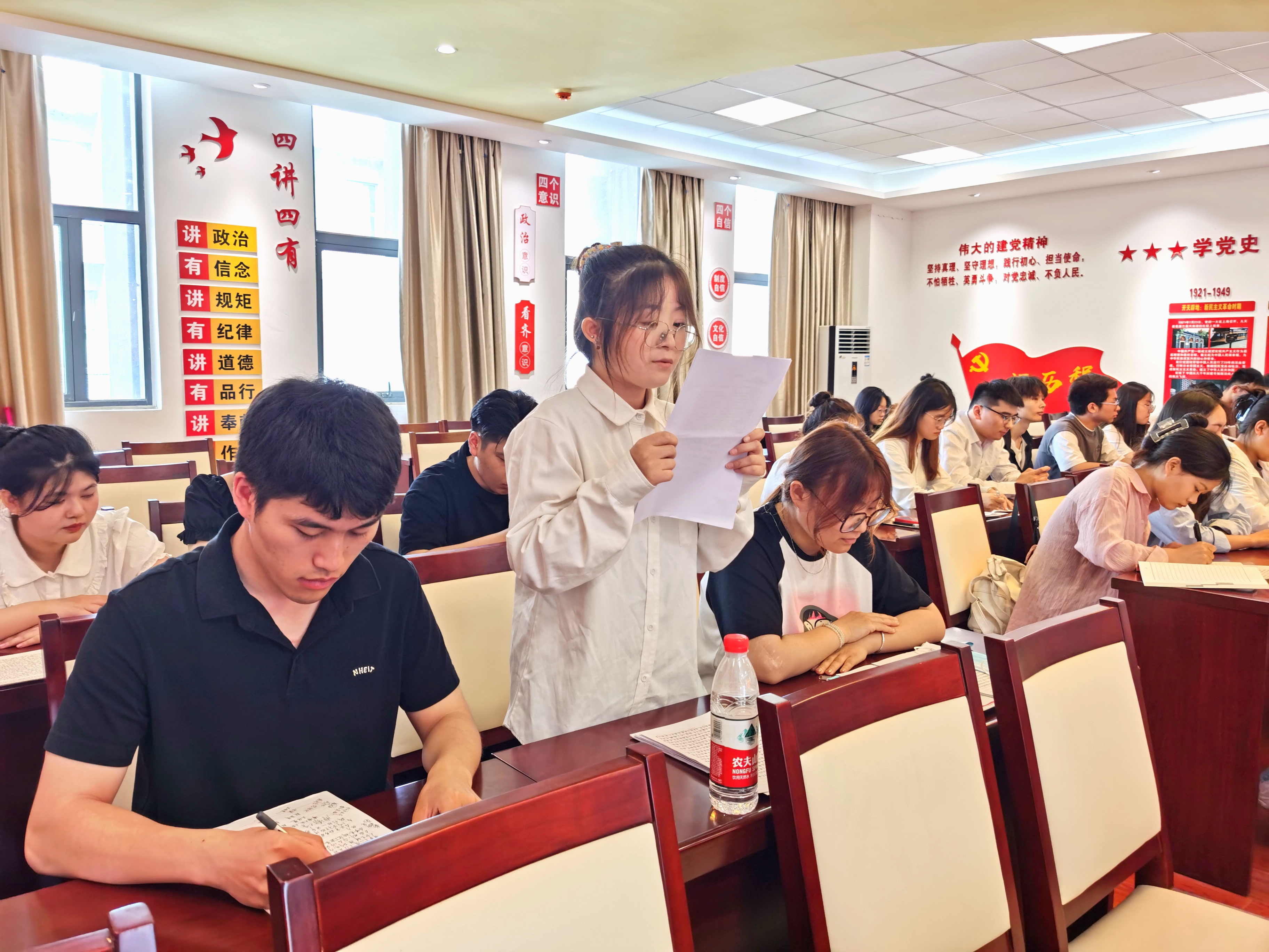 最后,学院党总支副书记刘圣春同志要求转正的党员同志:一要牢记共产党员这个第一身份,坚定理想信念,全心全意为人民服务,处处做榜样,事事做表率,时时带好头;二要牢记“合职人”、“经贸人”的校友身份,继续关心、关注学校、学院的发展,感恩母校、心系母校、宣传母校、回馈母校;三要牢记自己是中国人这个光荣身份,要爱党、爱国、爱人民、爱社会主义,立足自身岗位和角色,为祖国发展多做贡献。