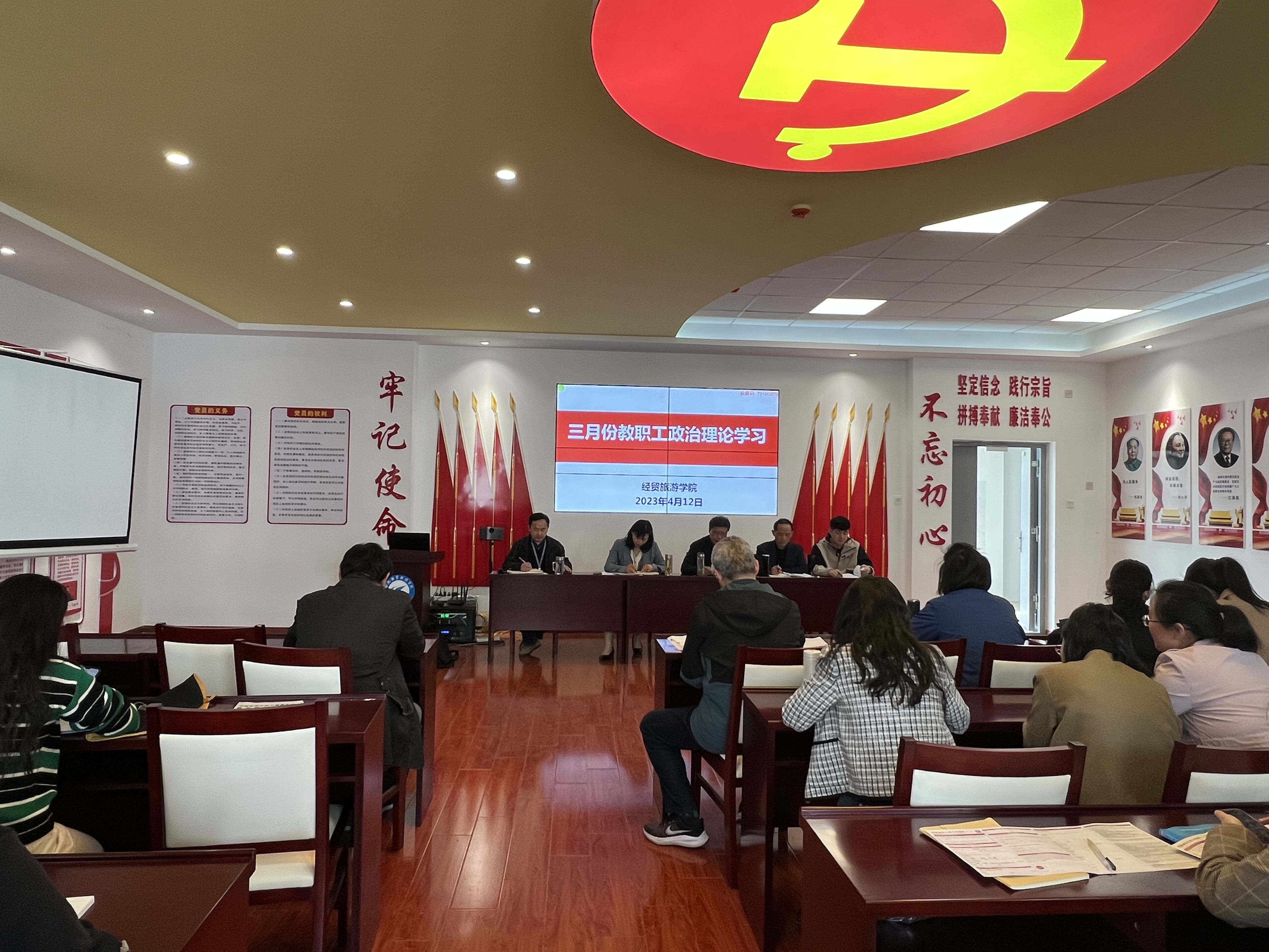 党总支书记梅亚松传达了3月份校党委理论学习中心组(扩大)学习会议精神。他指出,学习宣传贯彻党的二十大精神和全国两会精神是当前和今后一段时期的重要政治任务。要真正做到学懂、弄通、做实,以“一改两为”为抓手,真抓实干,实现学校高质量发展;要一切从实际出发,切实转变工作作风、切实加强与师生联系、切实提高履职尽责本领,用真实的调研素材调整工作策略,用内涵式建设抢占职业教育发展先机。
