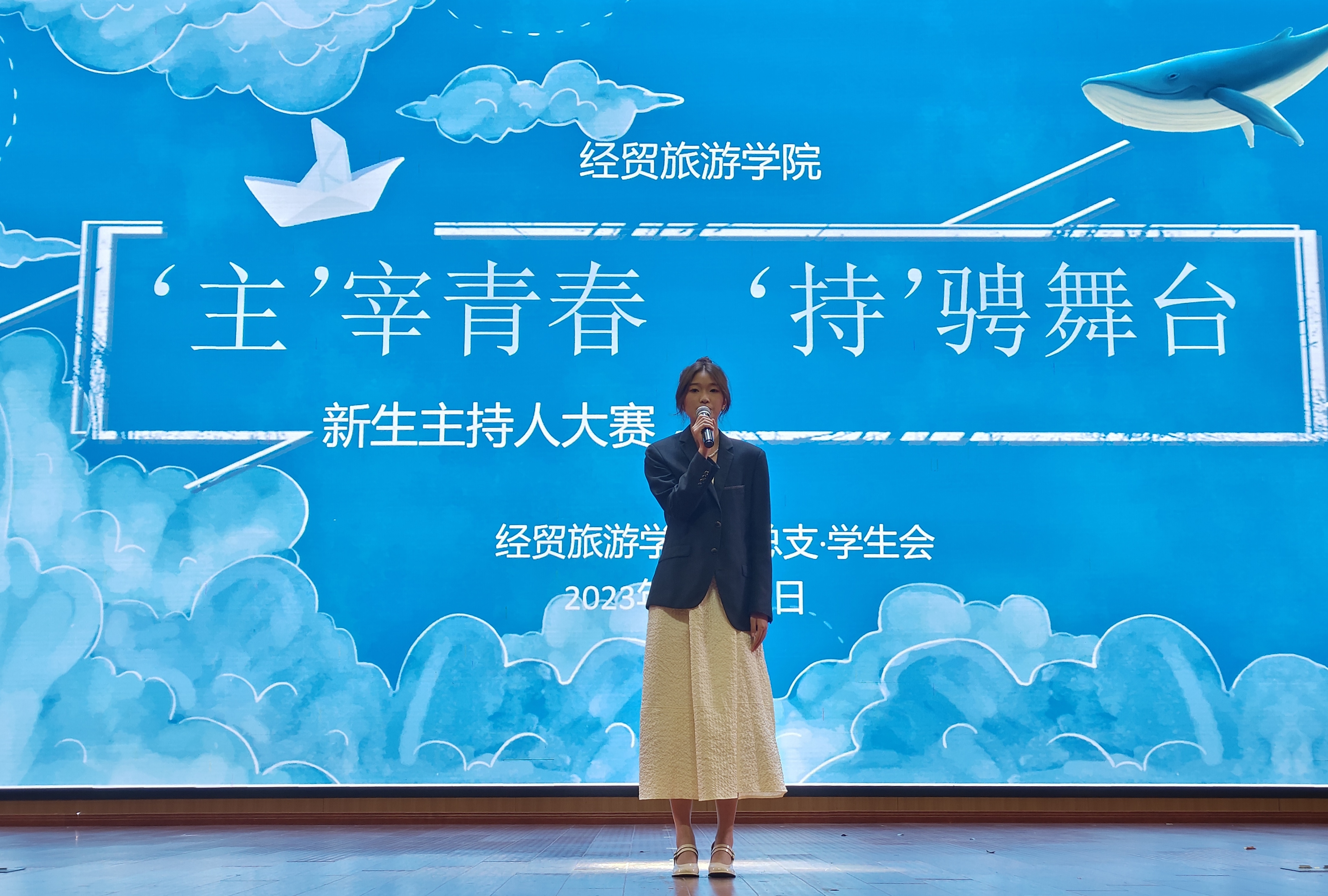 从自信大方的自我介绍,到一个个生动鲜活的新闻素材、社会故事,经贸学子用一支话筒绽放自己的热爱,为梦发声。本次新生主持人大赛为热爱主持的学生们搭建了追梦的平台,营造了积极向上的校园文化氛围。