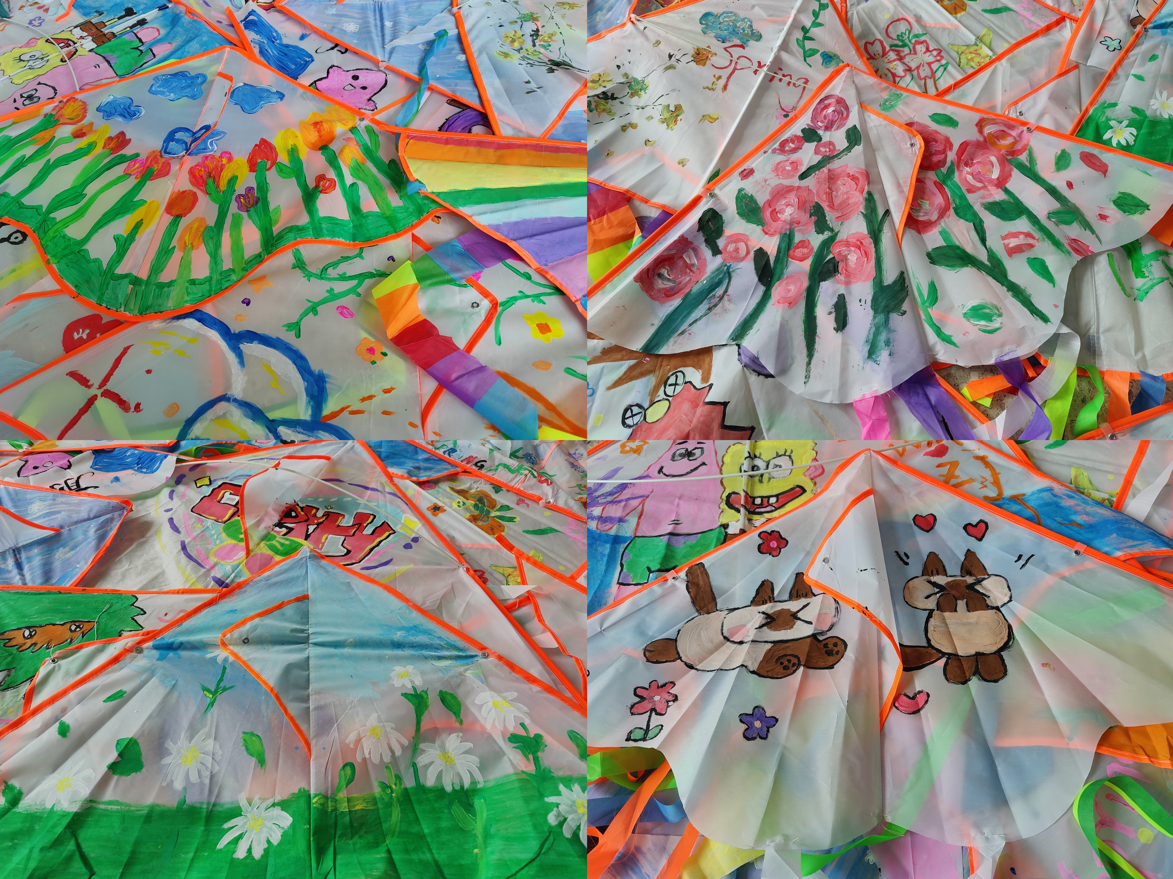 风筝创作结束后,大家兴奋不已地拿着风筝开始在操场试飞,烦恼在风筝升起的那一瞬间仿佛就烟消云散,欢乐的笑声伴随着五彩的风筝在风中飞翔,同学们开心地在操场上奔跑着。
