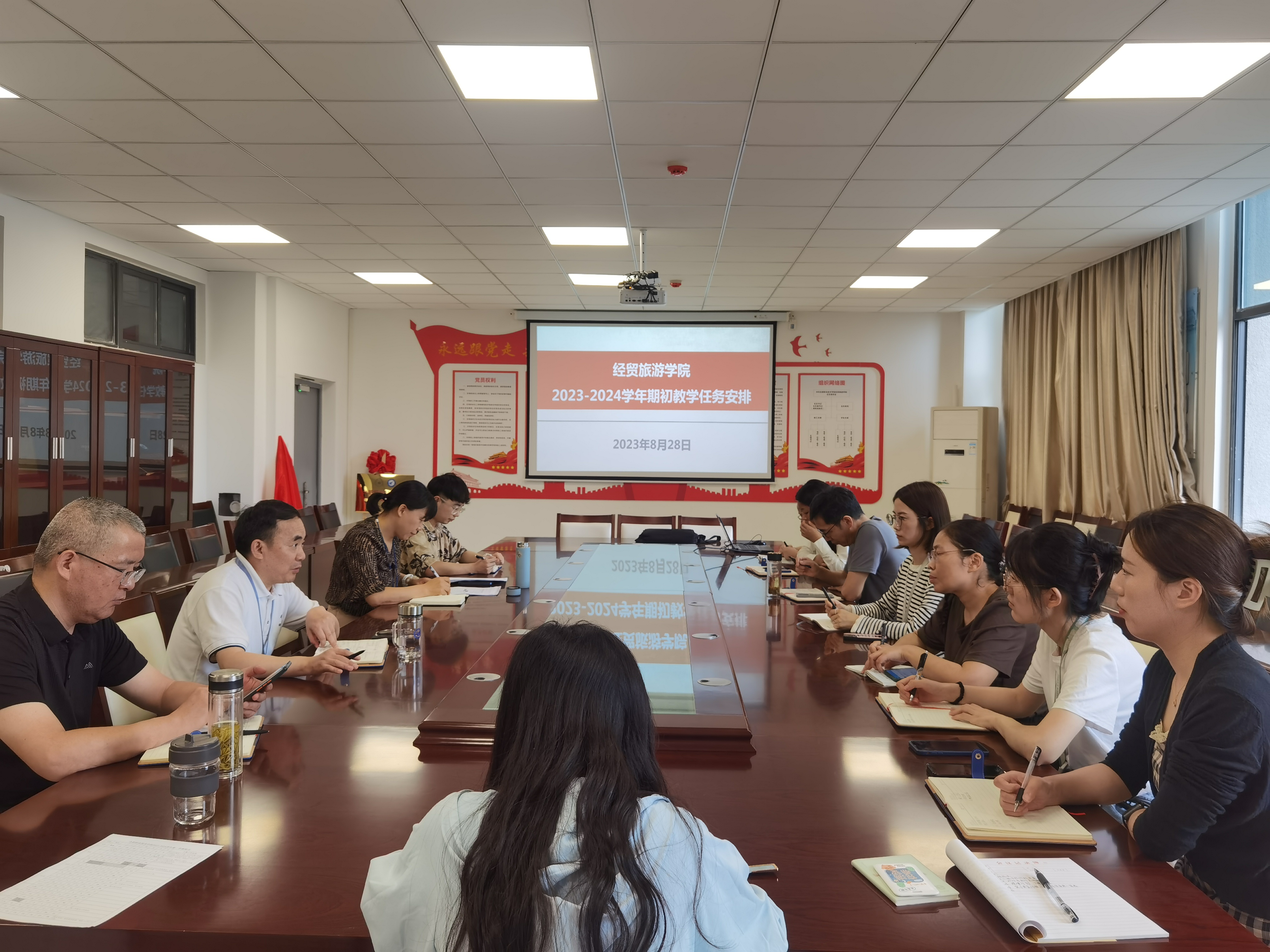 盛夏忽已暮,浅秋正渐浓。8月28日新学期工作第一天,大棒一进一出大大爽在经贸楼305会议室召开新学期第一次教学工作安排会议,学院院长赵红、副院长陈继林、各教研室主任以及全体教学管理办公室、综合管理办公室人员参加会议。会议由赵红院长主持。