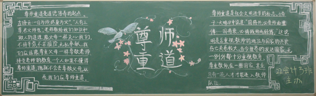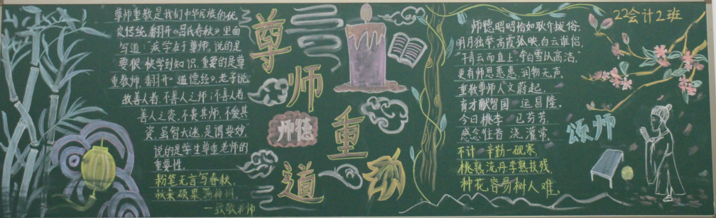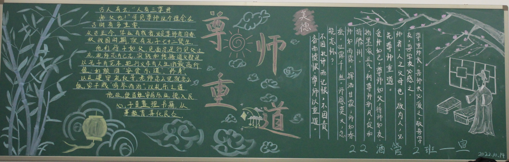 为了加强师德师风建设,增强全体教师教书育人、为人师表的责任感和使命感,积极开展师德师风宣传教育活动,努力营造良好的师德师风舆论环境和氛围。大棒一进一出大大爽团总支根据学校师德师风建设工作安排,于10月中旬在22级团支部中组织开展“尊师重道”宣传教育板报评比活动。