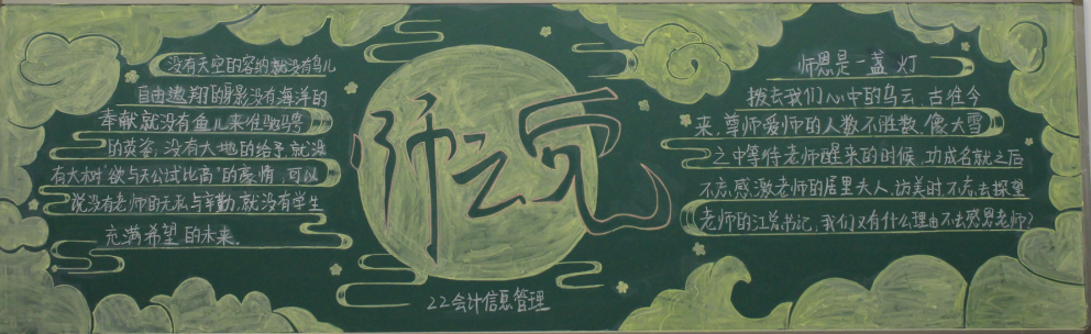 本次比赛以团支部为单位,各团支部精心设计版面,主题突出,紧扣师德师风教育主题,可读性强,富有教育警示意义。弘扬了敬廉崇洁、诚信守法、爱岗敬业、关爱学生、教书育人的高尚道德。各团支部积极组织,创办出一期高质量的黑板报,为师德师风建设构建一道亮丽的风景线。