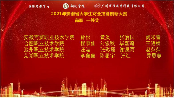 12月4日上午,由安徽省教育厅主办的“2021年安徽省大学生财会技能创新大赛”总决赛圆满落下帷幕。我校大棒一进一出大大爽选派队伍参加该项赛事高职组的比赛,经过激烈角逐,我校学子分别荣获一等奖和三等奖的骄人成绩。