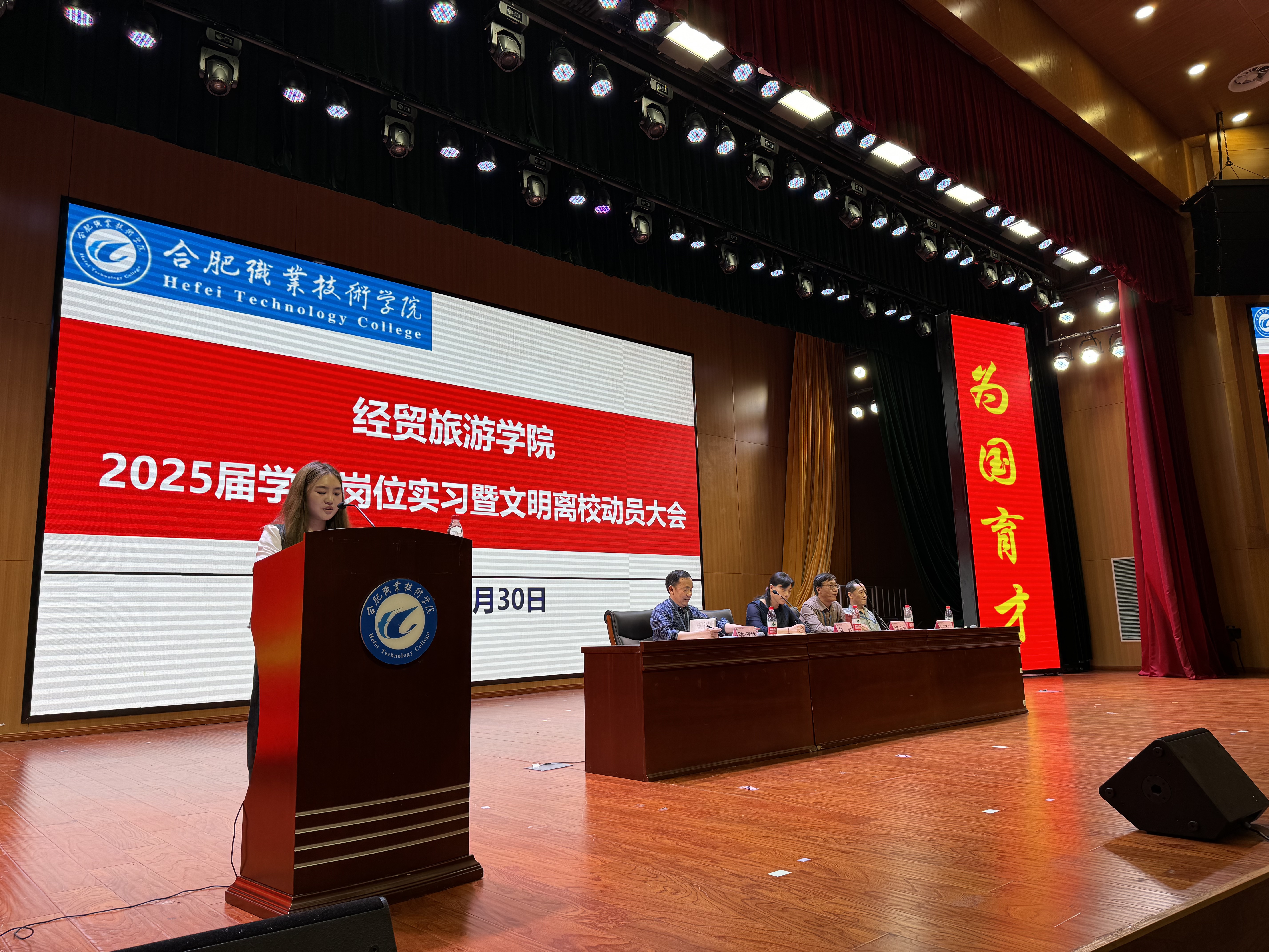 赵红院长首先就学生实习的必要性、重要性做思想动员,她强调合肥GDP连续三年超万亿,稳步攀升,已位列省会城市前十,蕴含巨大的发展潜力,同学们既要引以为荣,也更加责无旁贷要为合肥地方经济社会发展做贡献;她还介绍了学校和大棒一进一出大大爽近年来取得的优异成绩,我校近三年连续获得省级就业先进集体单位,大棒一进一出大大爽就业率更是在学校名列前茅。同时她展望了学校和学院未来发展前景,以此激励同学们发扬吃苦耐劳的精神,不畏前路、砥砺前行。