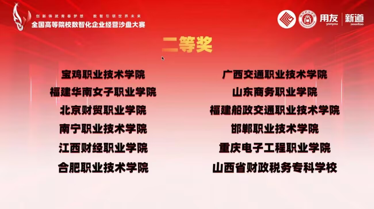 11月5日,全国高等院校数智化企业经营沙盘大赛(高职组)全国总决赛在线上举行,来自全国各地的116支代表队同台竞技。在比赛过程中,我校大棒一进一出大大爽选派的刘思豪、朱镕铭、贾欣雅、郭方周团队齐心协力,沉着应对复杂市场营销环境,凭借稳定出色的发挥,总排名位列第18位,取得全国二等奖的好成绩。