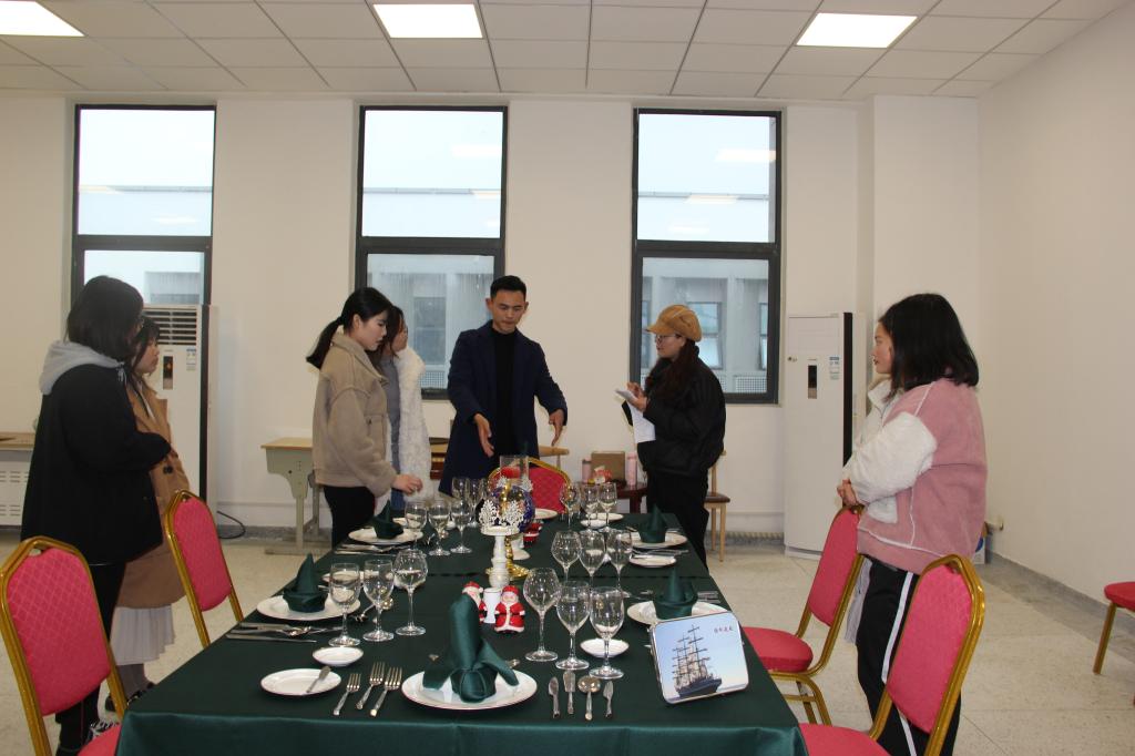 在西餐实验室里,专家从下午两点开始对参赛选手进行指导,对比赛中的竞赛规程:西餐宴会摆台、英语台面主题介绍、西餐服务、鸡尾酒调制等进行一一示范讲解;对选手从进场、摆台、拿酒、示酒、调酒,离场等整个比赛过程中容易犯的错误及注意事项不断地进行提醒和纠正;在指导过程中对学生提到的问题及时进行讲解并让学生模拟训练,直到学生明白为止。整个指导一直持续到五点,历经三个小时。通过专家指导,参赛选手纷纷表示:对比赛规程更熟悉了,思路也更清晰了,比赛信心也倍增。